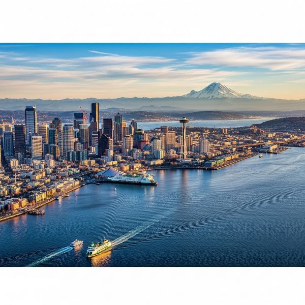 Marvel at the majestic Pacific Northwest landscape, with sweeping views of Mount Rainier, Mount Baker, the Cascade Mountains, and the Olympic Mountains.